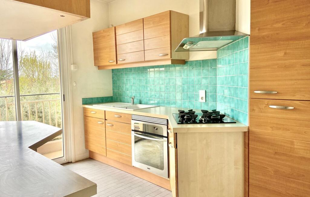 Le beau hall ouvre sur deux chambres, une salle de bain, des toilettes indépendants. Il distribue également la cuisine dont la baie vitrée ouvre sur un balcon avec vue sur les montagnes.