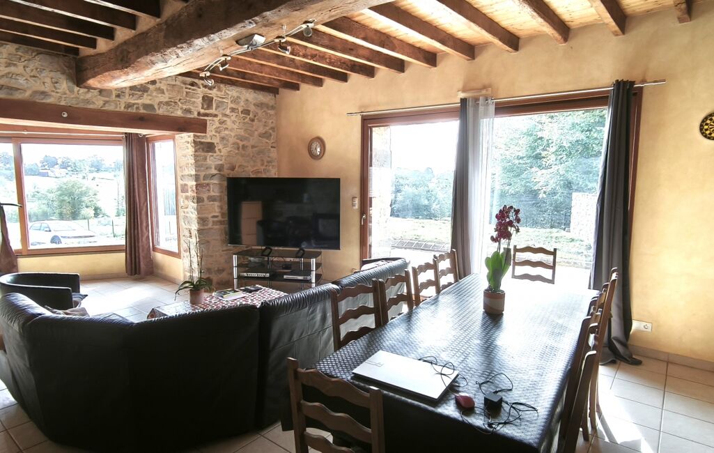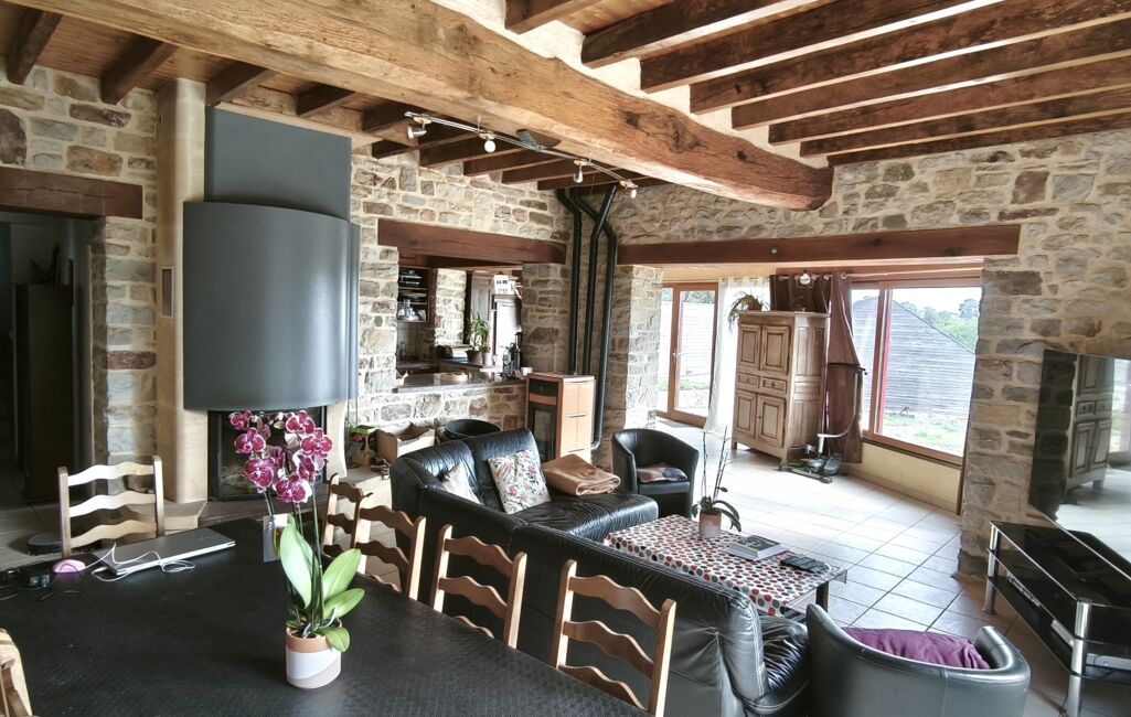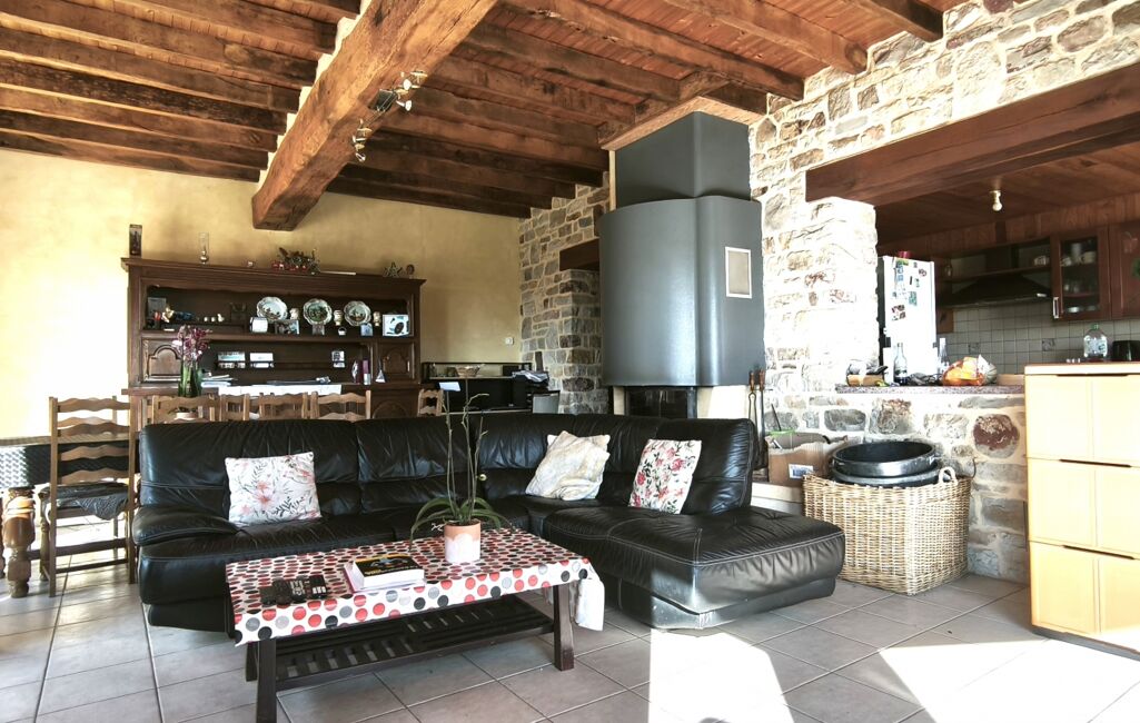 A la campagne, dans un environnement paisible, cette demeure conjugue authenticité et qualité de vie. Dès l’entrée, vous serez séduit par ses beaux volumes : un chaleureux salon agrémenté d’une cheminée insert et d’un poêle à granulés, une cuisine séparée, aménagée et équipée, ainsi qu’une pièce aménagée en chambre avec salle d’eau privative.