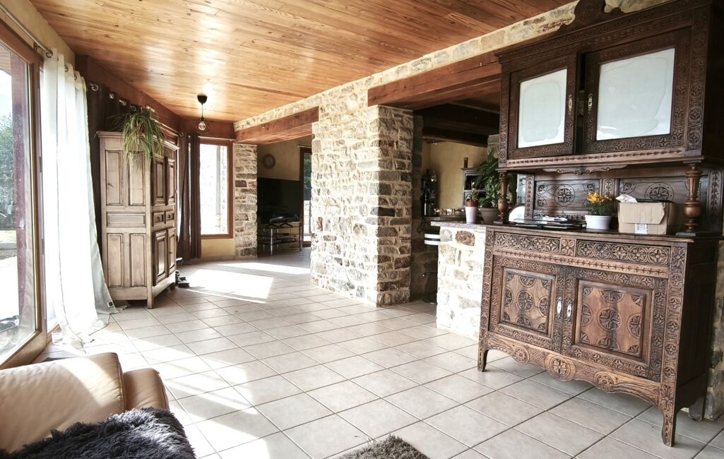 iad France - Katalina Poupard vous propose: Maison de caractère en pierre de 175 m², mitoyenne d’un seul côté et sans vis-à-vis, nichée sur un vaste terrain de plus de 3000 m².