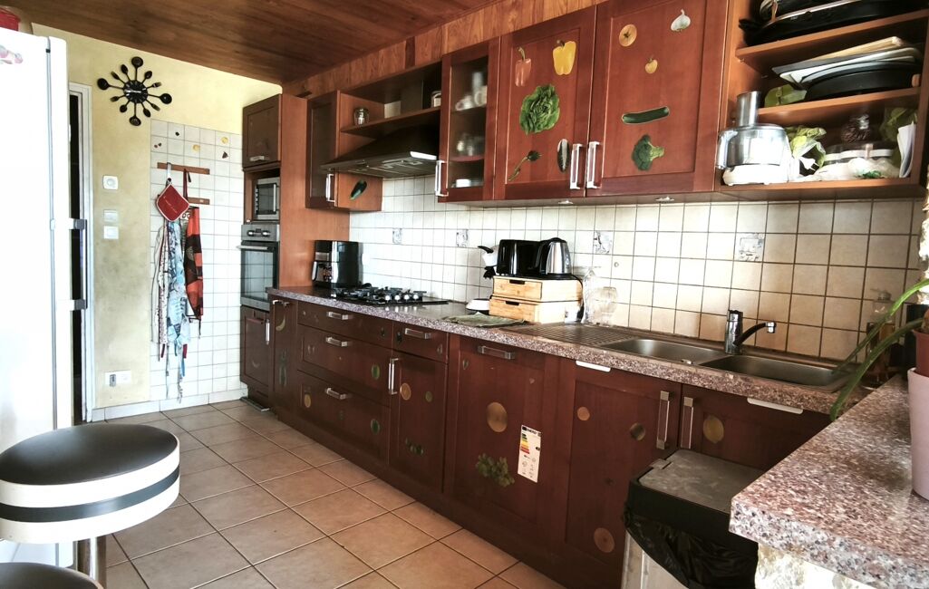 Côté extérieur, profitez d’une agréable terrasse, d’un jardin à aménager selon vos envies, d’un abri, d’un garage de 24 m² et d’une cave de la même superficie.
