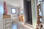 À l'étage, trois chambres cosy avec placard dont une avec dressing, une salle de bain spacieuse avec espace douche et bain et un wc indépendant.