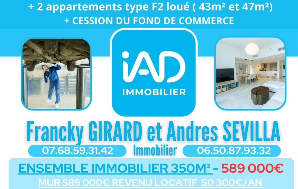 ENSEMBLE IMMOBILIER MIXTE comprenant un garage automobile réparation/ carrosserie/ peinture et un bureau + 2 appartements , entrée des bâtiments indépendantes.