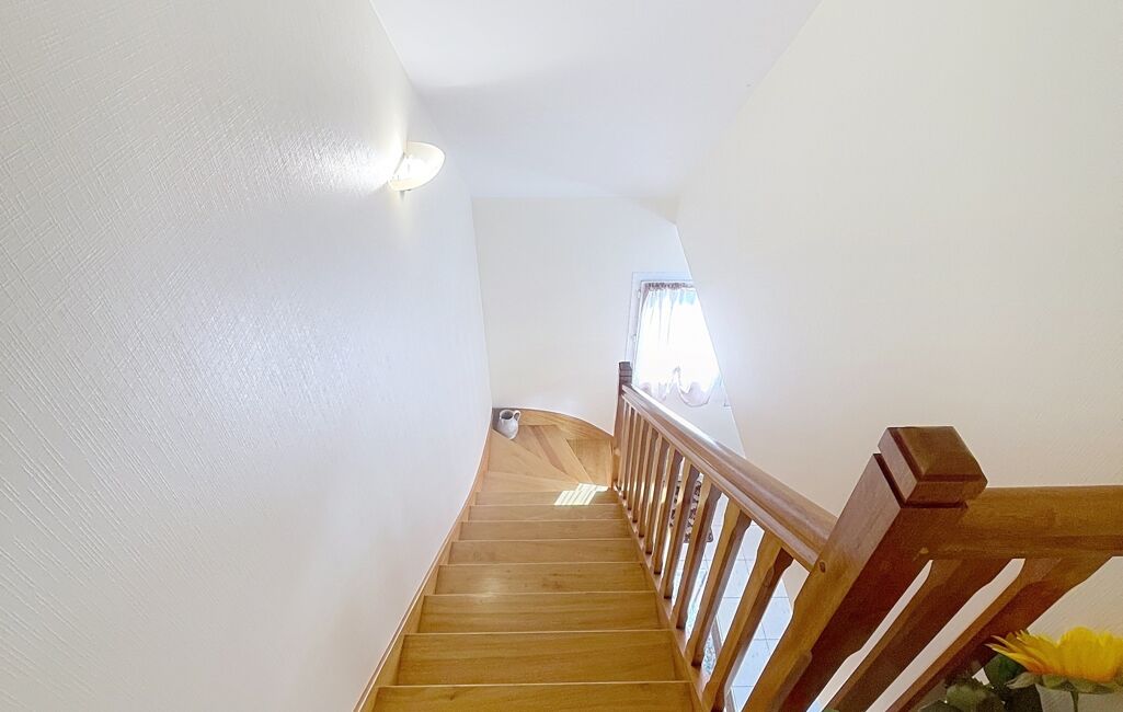 À l’étage, trois chambres, une salle de bains et un WC indépendant.