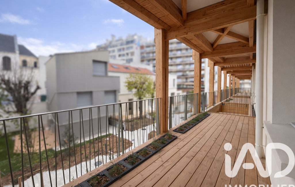 Grand balcon en bois de 14,5 m2 — rare à Paris, couvert, utilisable toute l’année, véritable prolongement de l’espace de vie, comme un salon extérieur