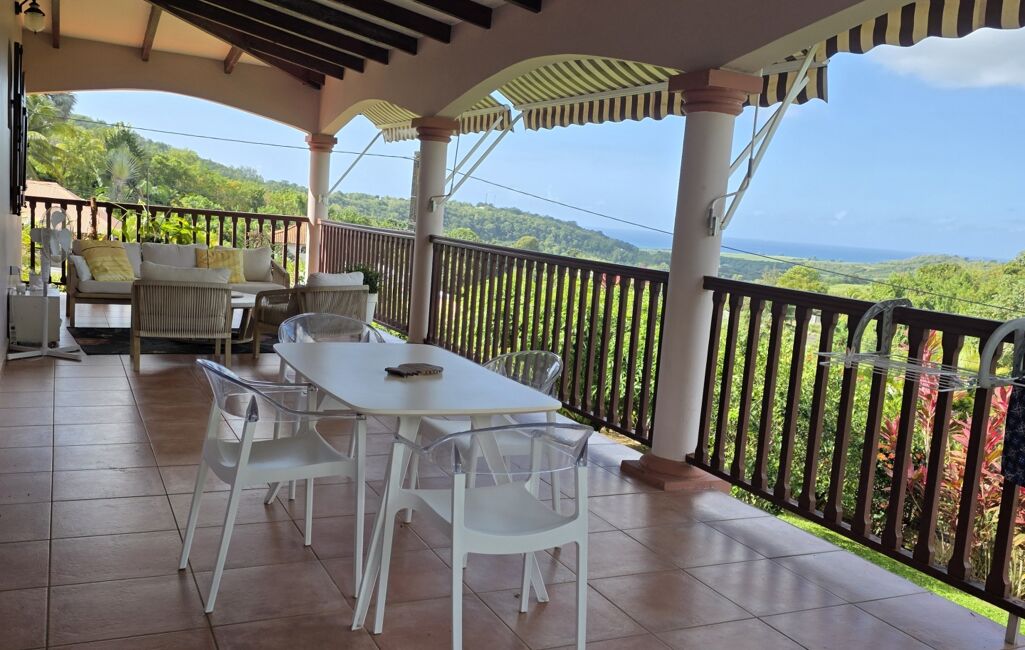 iad France - Sylvie Nathie vous propose: Secteur cité scolaire de RAMA Solide villa avec vue sur la Mer et le Rocher du Diamant - d'environ 120 m2 + 43 m2 de terrasses couvertes avec une toiture en tuiles, sous sol total, 1000m2 de terrain composée comme ceci, entrée sur la salle, une cuisine aménagée et équipée de qualité et quasi neuve, 2 chambres, 1 salle d’eau, 1 wc, 1 suite parentale - 1 piscine au sel , au sous sol - 1 chambre avec salle d’eau et wc, une cuisine , 1 atelier - récupérateur d'eau - portail électrique - Alarme - moustiquaires sur toutes les fenêtres - arbres fruitiers. A quelques minutes des plages de Sainte Luce et de la Nationale - A très vite pour une visite