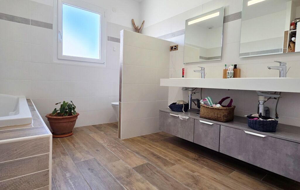 Magnifique Villa dans un secteur prisée calme avec de belles prestations en T4 de 2017 avec 132m2 de surface habitable et un pool house de 60m2 sur un terrain de 1285m2 avec garage de 22m2 exposition plein sud, sans vis à vis, climatisation gainable.