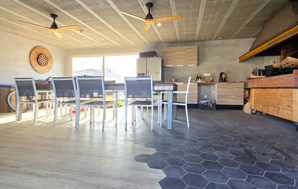 Côté jardin, on retrouve une piscine de 8 par 4 en coque, au sel, avec régulateur de PH, jardin fait par un paysagiste avec boulodrome, cuisine d'été de 60 m2 avec électricité et eau, barbecue intégrer, possible de faire une dépendance facilement, on retrouve également un potager on peut stationner une dizaines de véhicules dans l'entrée.