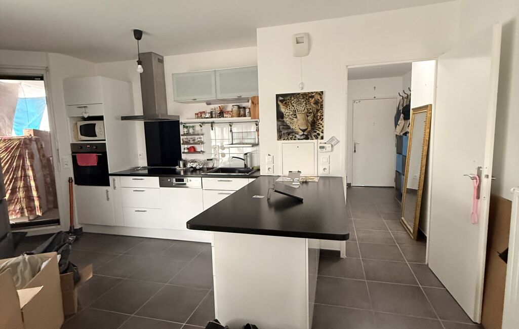L'appartement se compose d'une entrée, d'une lumineuse pièce de vie comprenant un salon/salle à manger avec une cuisine ouverte entièrement équipée. De belles baies vitrées vous permettent d'accéder au balcon de 5m² exposé sud-ouest, idéal pour profiter des beaux jours.