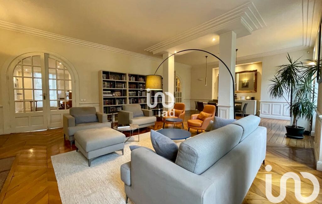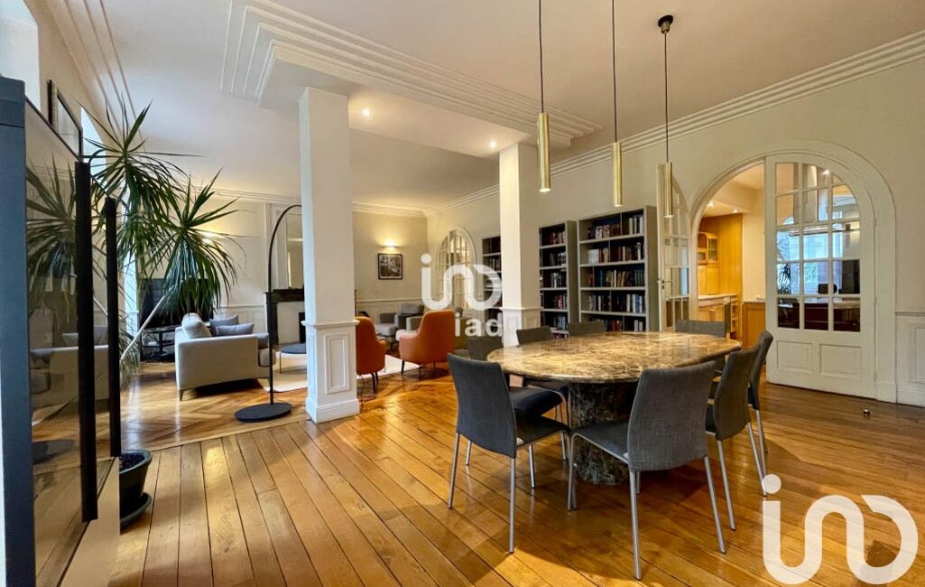 Le premier étage dispose d' une salle de réception de 55 m2 de style haussmannien du plus bel effet donnant sur une cuisine dinatoire . Un grand espace parental privatif de 50m2 disposant d'un dressing une salle de bain aux prestations sublimes et un wc .