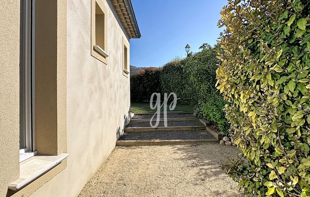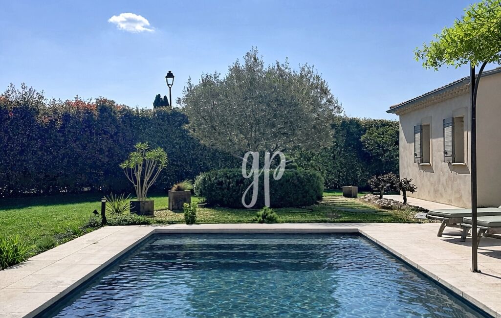 iad France - Géraldine PRATS vous propose: Dans un environnement très prisé avec vue dégagée sur le Luberon, découvrez cette villa contemporaine de 2016, édifiée sur un terrain paysager d’environ 1 000 m².
