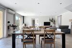 Dès l’entrée, un hall dessert une pièce de vie lumineuse d’environ 50 m², exposée plein sud, ouverte sur l’extérieur et ses différentes terrasses, dont certaines ombragées, idéales pour profiter des journées d’été en toute fraîcheur.
