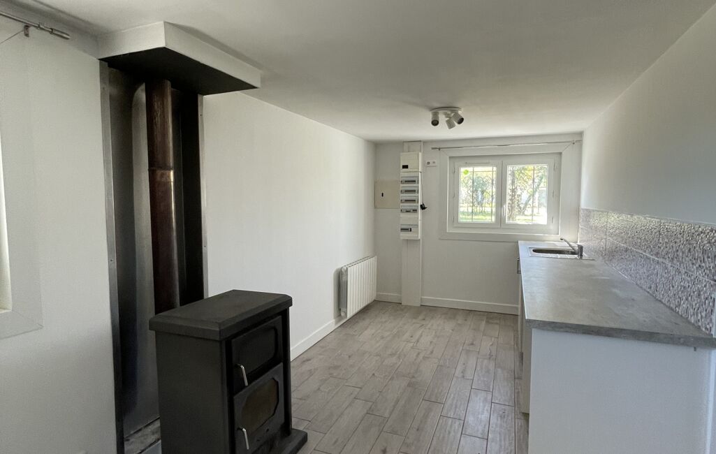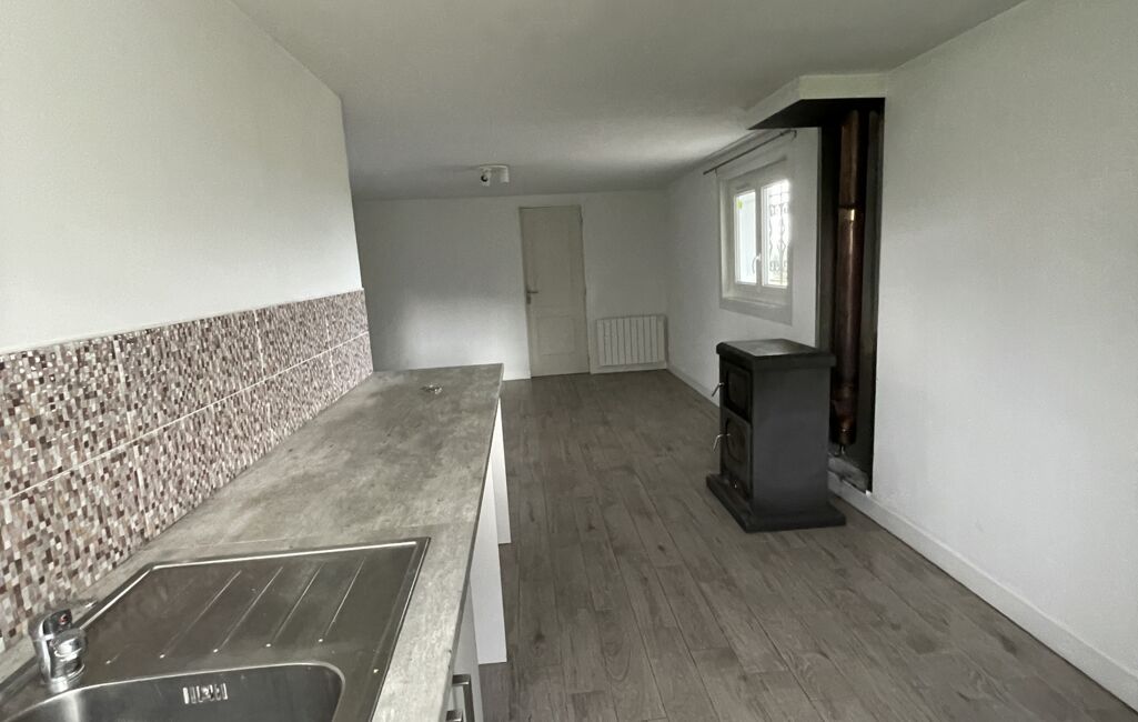 Au Rez-de-chaussée , un appartement F1 avec belle pièce de vie avec un poêle à bois et son coin cuisine, une salle d'eau avec WC et une chambre, idéale pour étudiant, amis ou faire de la location. Plus un garage.