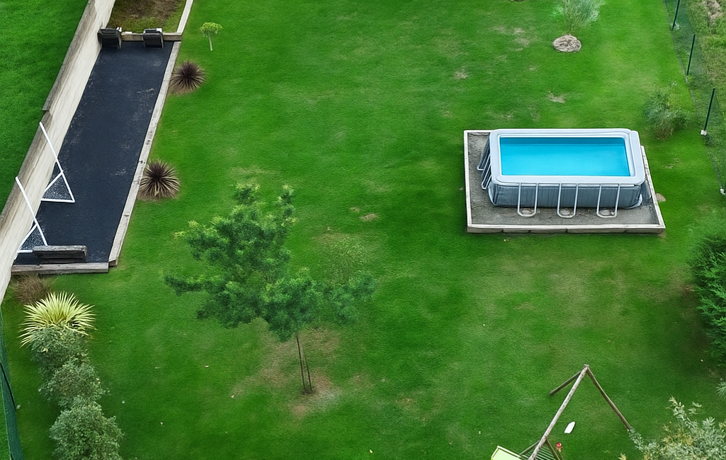 À l’extérieur, une superbe parcelle de 1380 m² entièrement clôturé : grande terrasse , terrain de pétanque , cabanon de jardin.