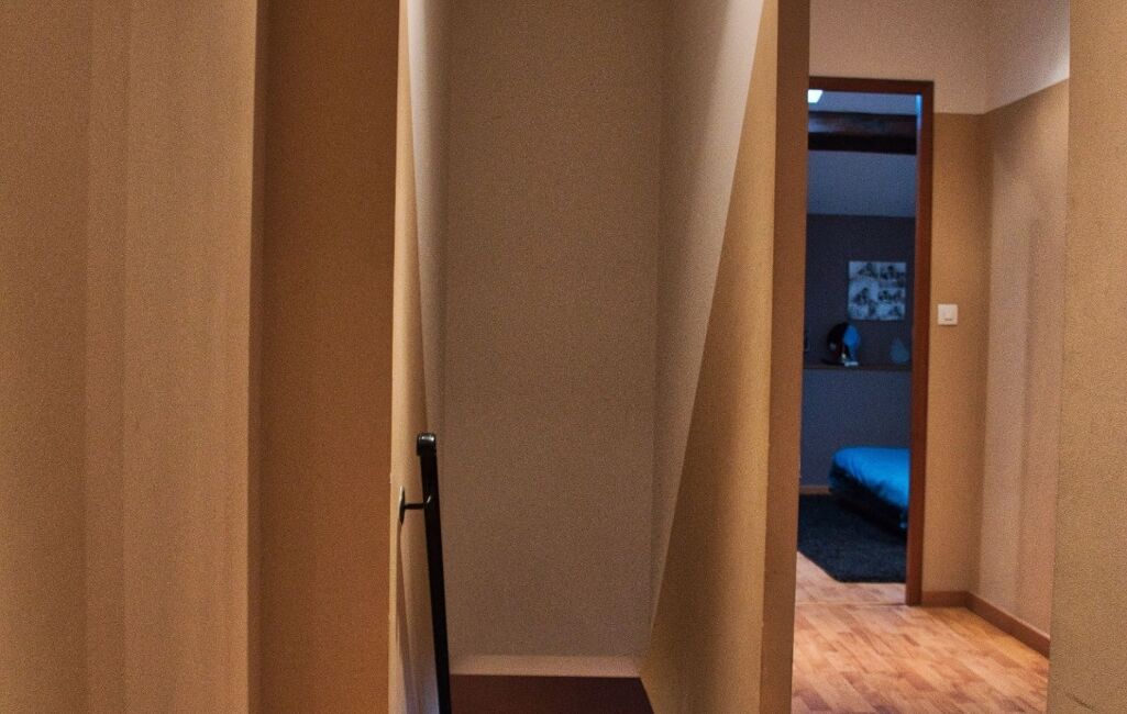 L’étage accueille l’espace nuit, parfaitement agencé, avec deux chambres confortables dont une spacieuse de 21 m². Une salle de bain élégante avec grande baignoire et double vasque, ainsi qu’un WC indépendant, complètent ce niveau.