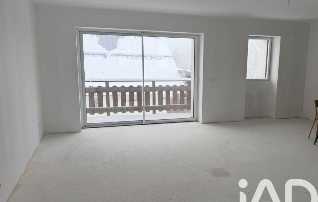 L’étage intermédiaire dévoile une belle pièce à vivre spacieuse et lumineuse avec cuisine ouverte à installer et balcon, emplacement prévu pour un poêle à bois, offrant un plateau parfait pour imaginer un intérieur chaleureux et plein de caractère.