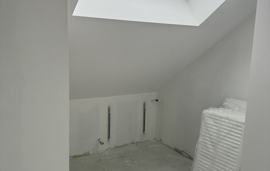 Le dernier niveau, avec ses deux chambres et un bureau, ainsi qu’une salle de bain avec WC à terminer, offre un terrain idéal pour laisser libre cours à votre créativité et vos envies déco.