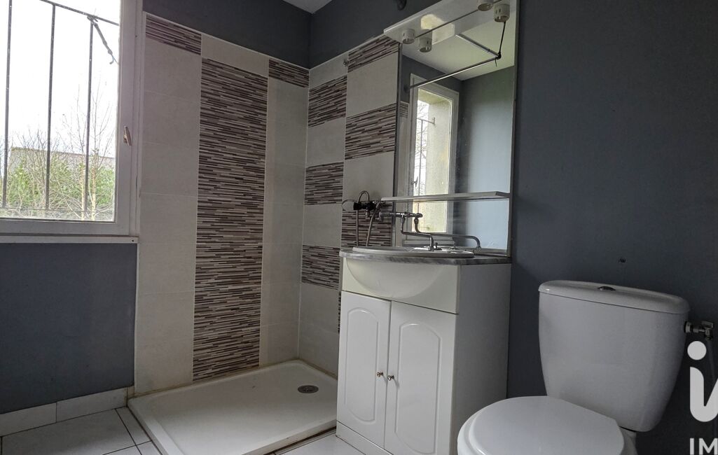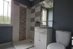 Après, nous découvrons une salle d'eau de 4,07m² avec une douche (bac plat), une vasque avec un petit meuble et un WC.