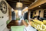 Dans cette ancienne cuverie de 1850, vous irez de surprises en surprises : Commençons tout d'abord par la grande pièce de vie de 45 m² environ, dotée d'une cuisine ouverte, qui donne directement sur une petite terrasse intimiste. Vous serez séduits par le cachet authentique des poutres et pierres apparentes, comme du poêle à pellets qui créent une atmosphère chaleureuse.