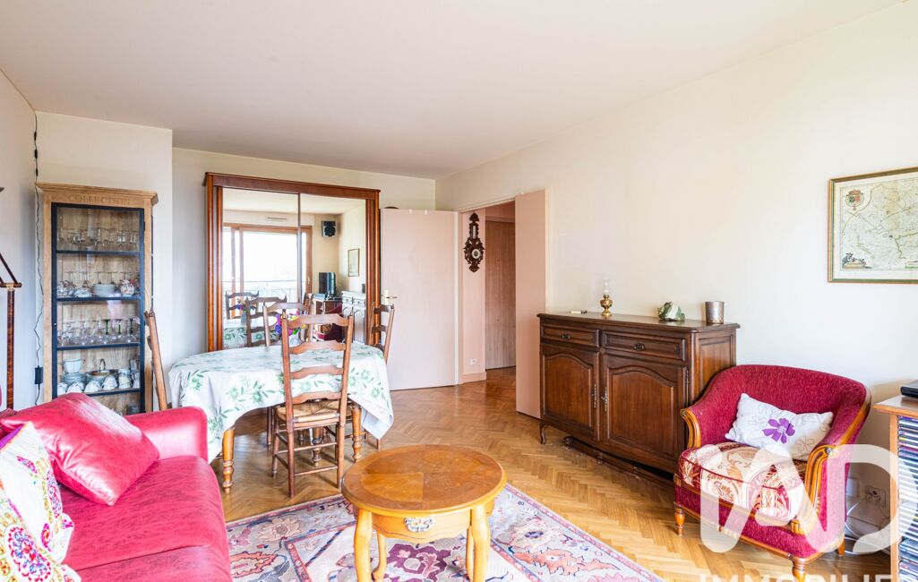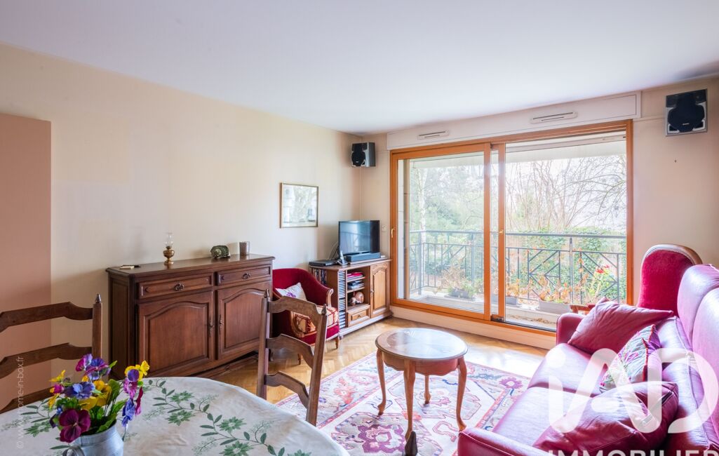 Le grand salon de plus de 20m², avec son parquet massif, offre un charme rare. L’intégralité de sa façade est composée d’une baie vitrée orientée au SUD. Elle s’ouvre sur un balcon, au calme, vers le parc de la résidence.