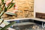 À l’extérieur, une cour accueille une piscine-spa chauffée, équipée de jets et d’une nage à contre-courant.