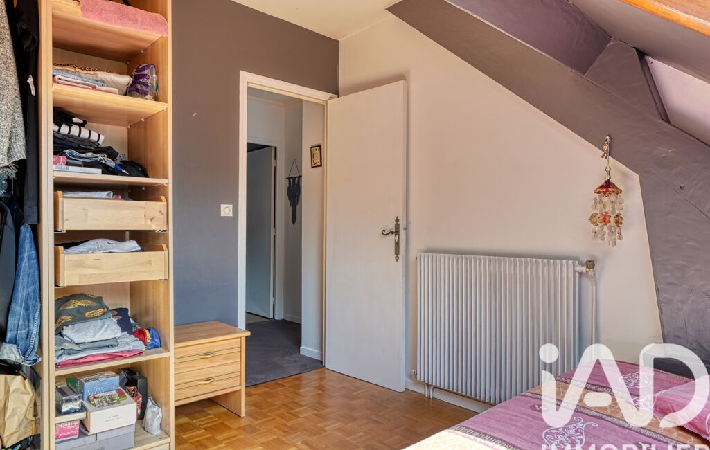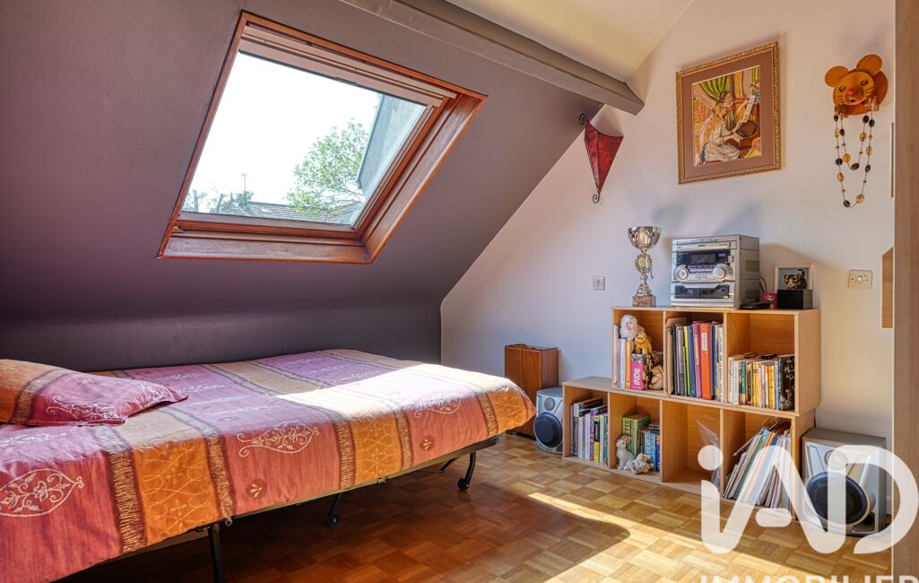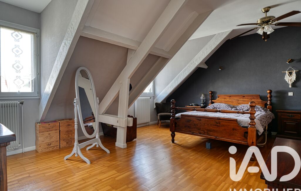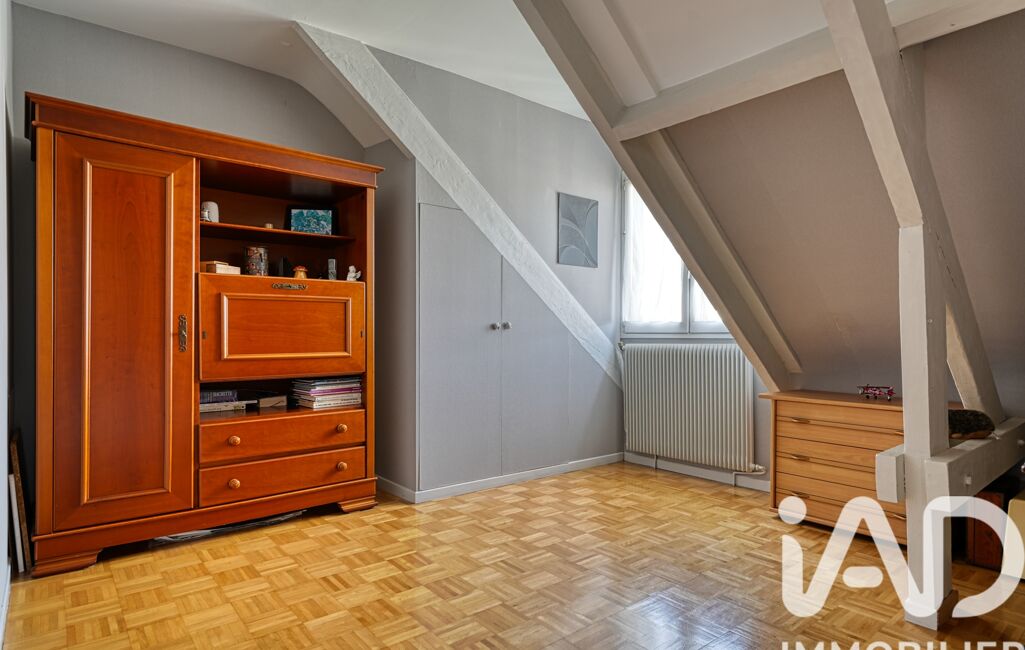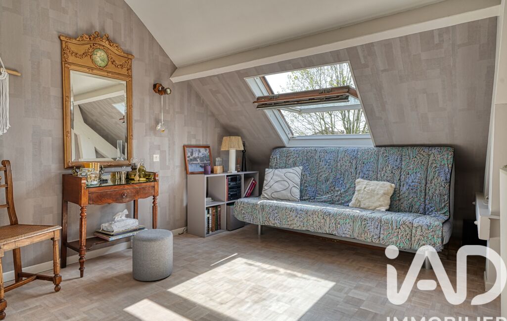 À l’étage, un palier dessert quatre chambres mansardées (de 10,7 m² à 23 m²), une grande salle de bain avec baignoire d’angle et douche, ainsi qu’un WC indépendant.