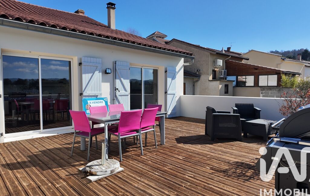 iad France - Virginie Crozet vous propose: Emplacement idéal, dans la rue commerçante de Saint-Just, venez découvrir ce beau T4 en duplex traversant, de 115 m² au sol avec sa sublime terrasse de 45 m² env. exposée sud et sa vue dégagée aux abords de la Loire, comprenant également un garage.
