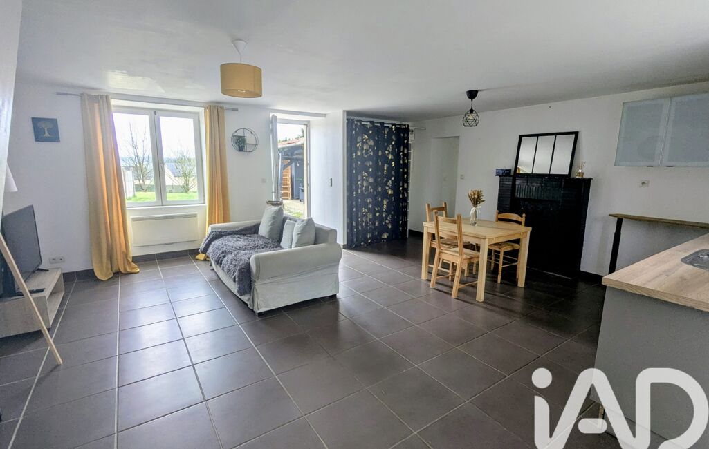 iad France - Valerie Tanguy vous propose: EN EXCLUSIVITE, centre bourg de Gahard, maison de 85M2, rénovée . Sur un terrain de 550M2 environ, cette charmante maison propose une pièce de vie avec coin cuisine équipée et aménagée, un salon, un grand placard de rangement. Une jolie petite cheminée complète le charme de la pièce, actuellement hors service, elle peut être tubée pour installer un poêle.