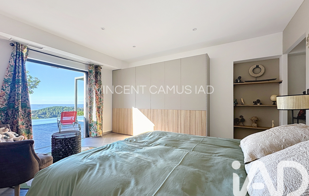 Au sein d’un domaine privé et sécurisé, cette villa contemporaine d’environ 280 m², résolument tournée vers la Méditerranée, offre un cadre de vie unique en position dominante. Dès l’entrée sur la propriété par un joli portail : de vastes espaces de stationnement et deux garages soulignent le caractère prestigieux des lieux.