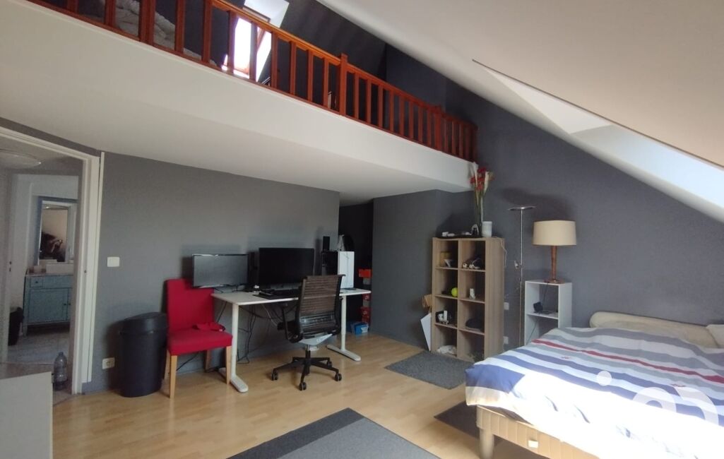 Au premier étage, vous découvrirez un grand espace de vie lumineux, avec de belles ouvertures orientées au sud pour une luminosité optimale tout au long de la journée. Ce niveau se compose actuellement d'une chambre, d'un bureau, salle d'eau, d'une WC séparé, d'une cuisine aménagée, équipée et ouverte sur le salon, offrant ainsi une belle convivialité pour les moments en famille ou avec vos proches