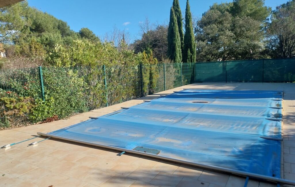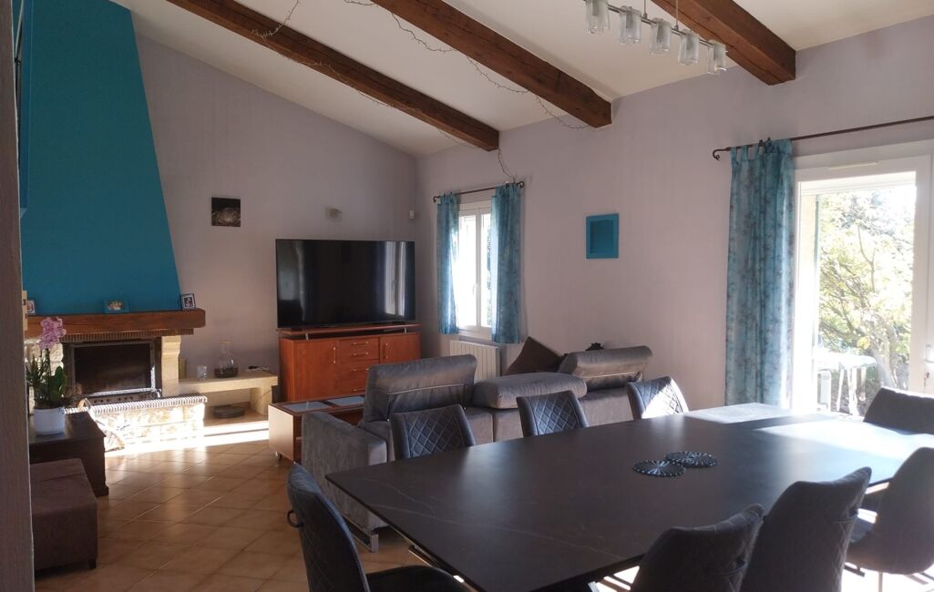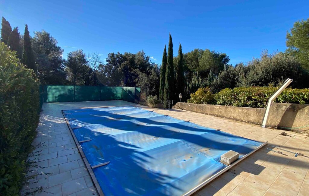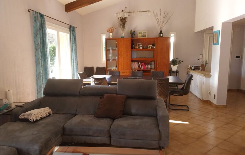 NOUVEAUTÉ. Dans un environnement de qualité et résidentiel, maison de plain-pied de 131m2 hab environ, sur 2 200m2 de terrain clos, belle pièce de vie (43m2) donnant sur sa terrasse au sud, trois chambres, deux salle d'eau, avec studio indépendant. Grand garage de 53m2 avec sa grande mezzanine. Piscine 8x4 avec son pool-house. Deux terrasses. Cellier. Cave. Menuiseries DV PVC avec moustiquaires. Climatisation réversible, insert. Panneaux photovoltaïques (revente 2 000 ?/an). Forage. Adoucisseur. Aspiration centralisée......contact : 06x35x15x31x80