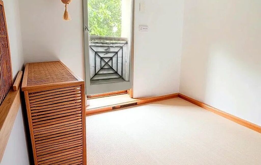 Une véranda donnant sur le jardin arboré