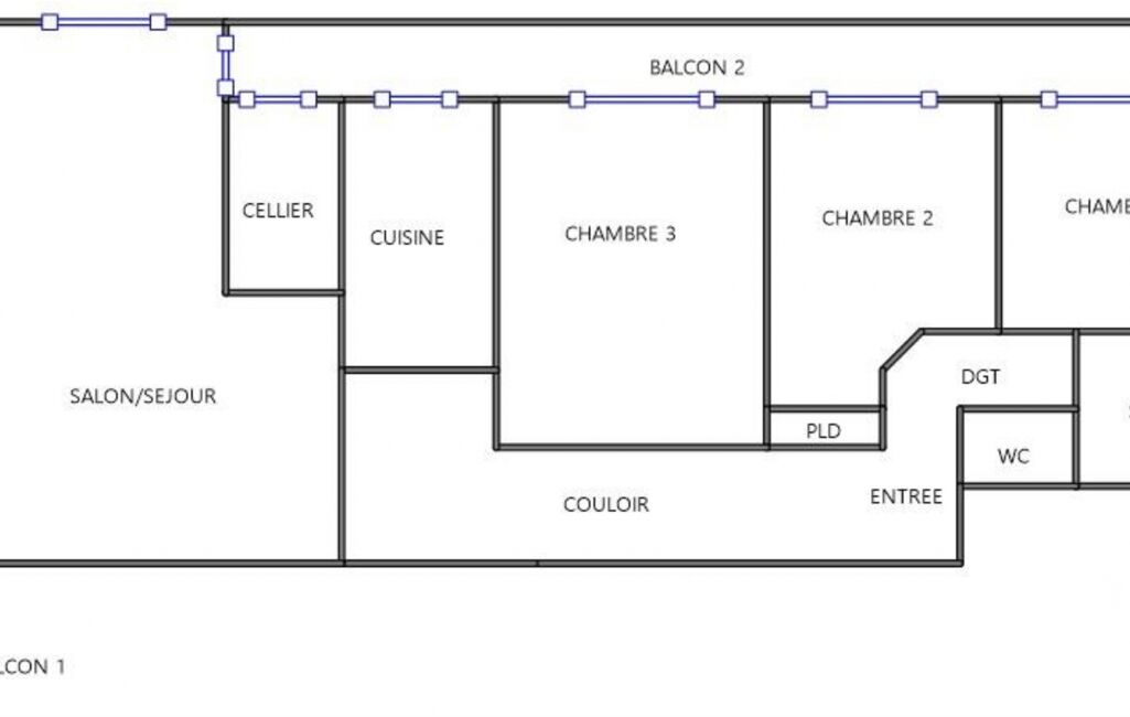 – 3 chambres, chacune donnant accès à un second balcon.