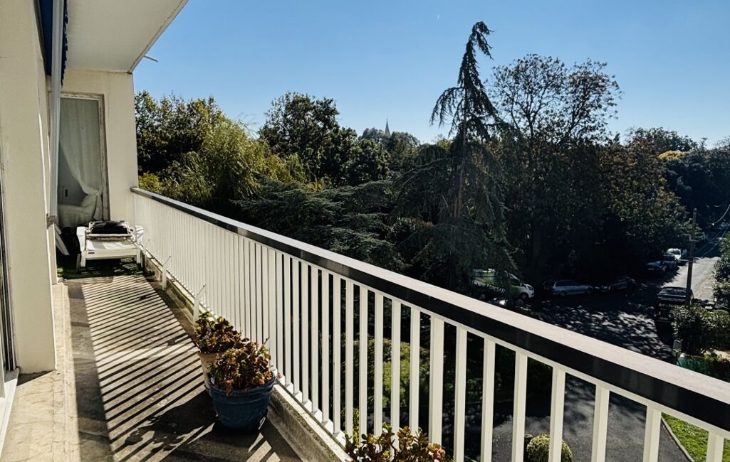 – Un séjour spacieux ouvrant par de larges baies vitrées sur un balcon filant avec vue dégagée et arborée sur le Parc Charruyer.