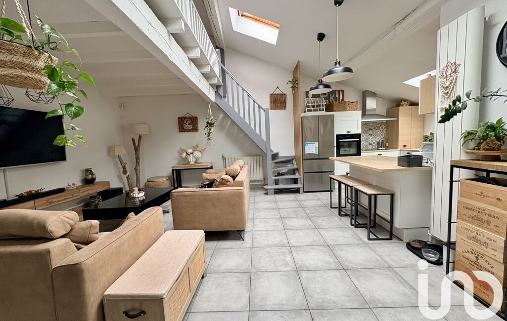 iad France - Céline Cassayre vous propose: Maison de ville d'environ 105 m2 atypique et pleine de charme située dans le quartier du Bourg. Dès votre arrivée, vous serez séduits par le jardin sur l'avant de la maison, intimiste , sans vis à vis et végétalisé de 100 m2 avec une grande terrasse en bois de 25 m2.