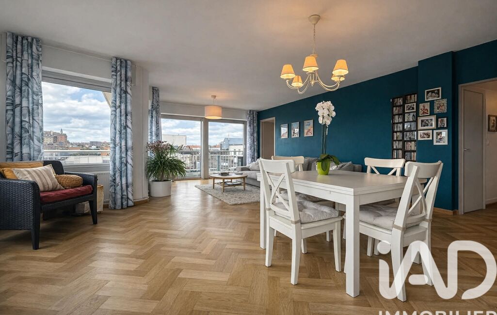 Dès l’entrée, vous découvrez un intérieur lumineux et parfaitement agencé. Le salon-séjour, baigné de lumière, offre une vue dégagée sur église Saint-Vaast de Béthune, apportant charme et cachet au quotidien.