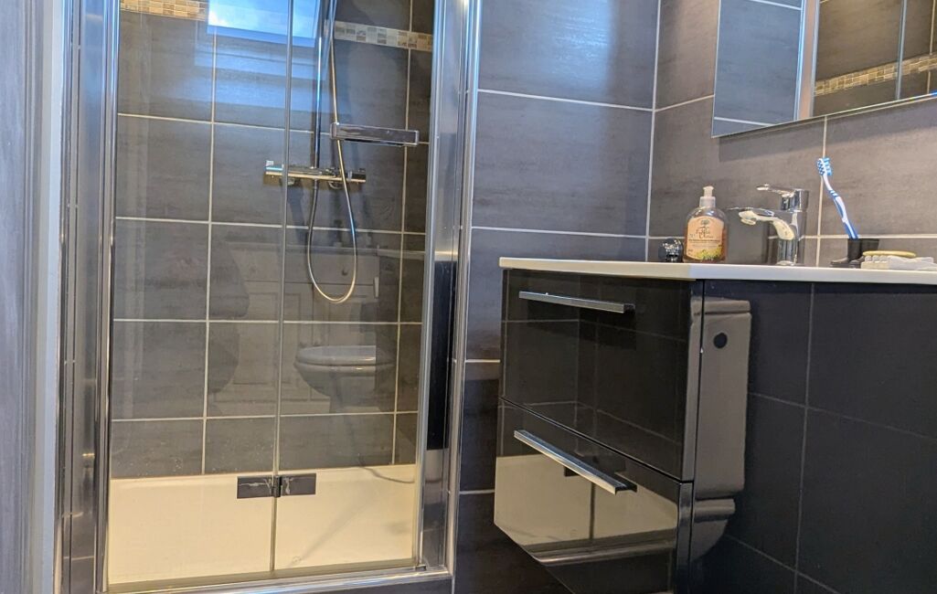 2 chambres, salle de bain moderne et WC indépendants.