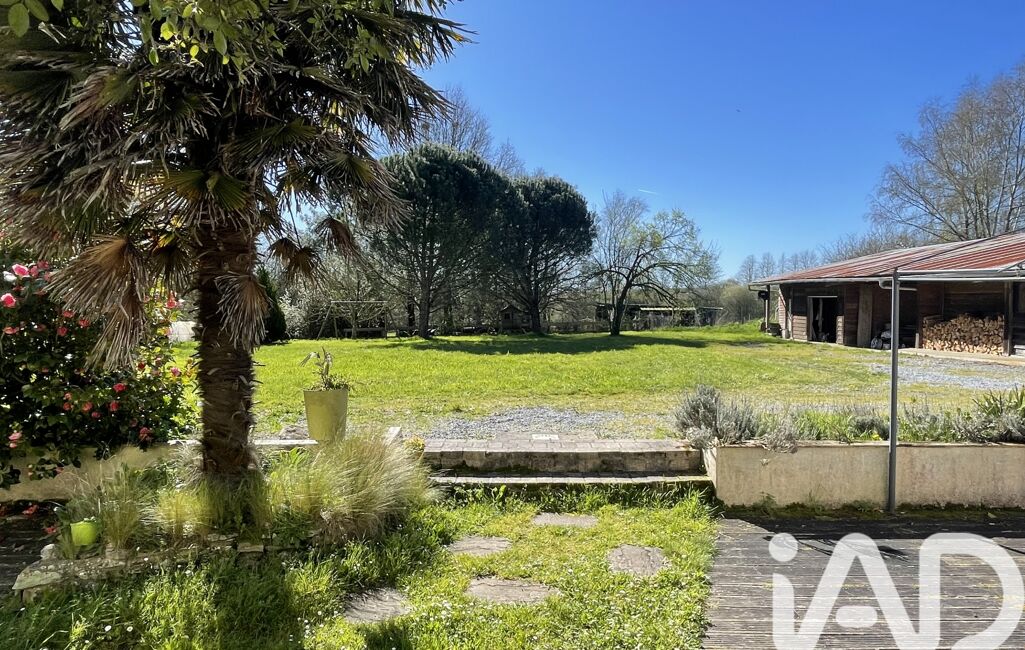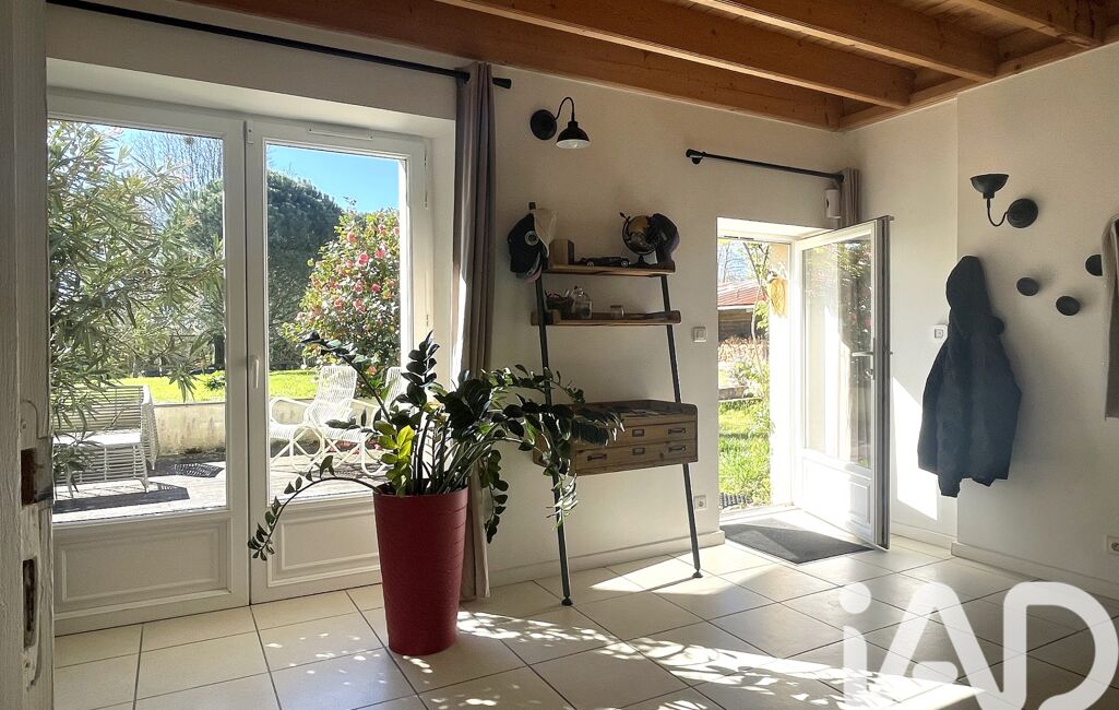 Toute la maison donne sur une terrasse bois (à refaire) avec barbecue, et le jardin plein sud avec pelouse et arbres.