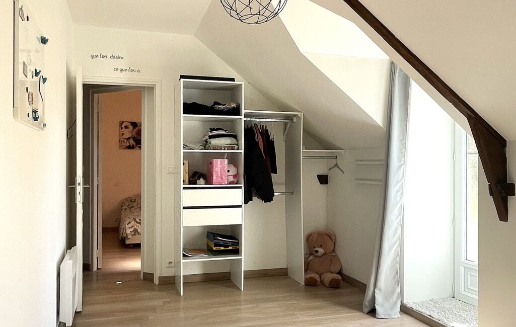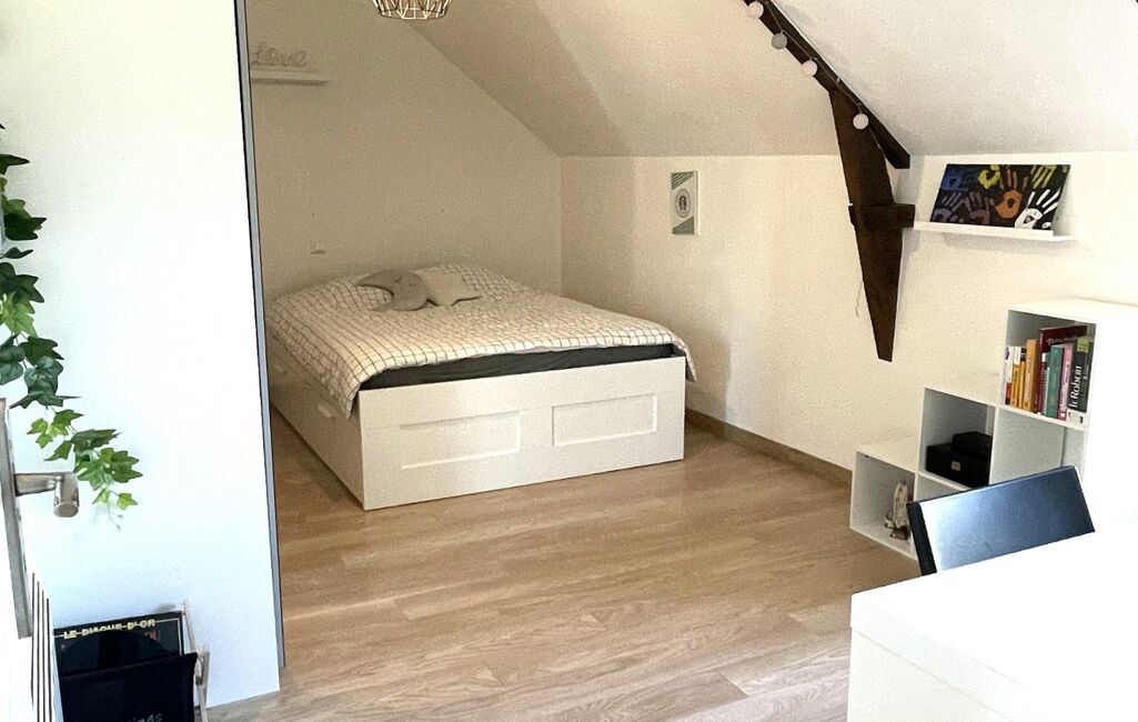 L'étage dispose de 5 chambres lumineuses sur parquet, une salle d'eau avec baignoire et douche, un bureau / salle TV et des toilettes indépendantes.