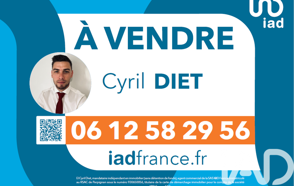 La présente annonce immobilière a été rédigée sous la responsabilité éditoriale de M Cyril Diet mandataire indépendant en immobilier (sans détention de fonds), agent commercial de la SAS I@D France immatriculé au RSAC de PERPIGNAN sous le numéro 930650056, titulaire de la carte de démarchage immobilier pour le compte de la société I@D France SAS.