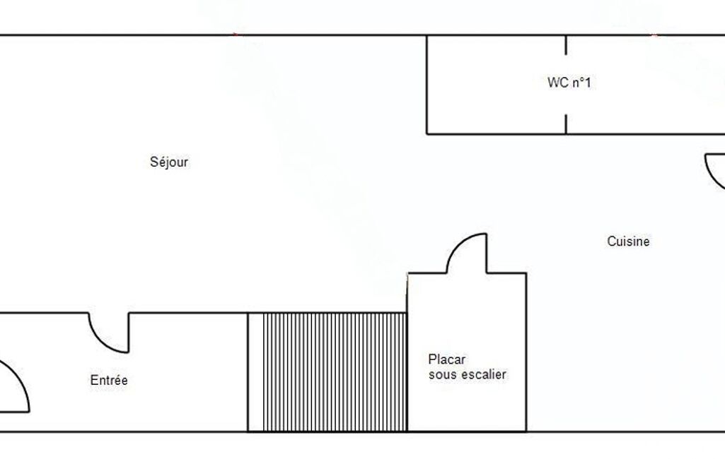 Rez-de-chaussée : un salon, une cuisine ouverte, un WC