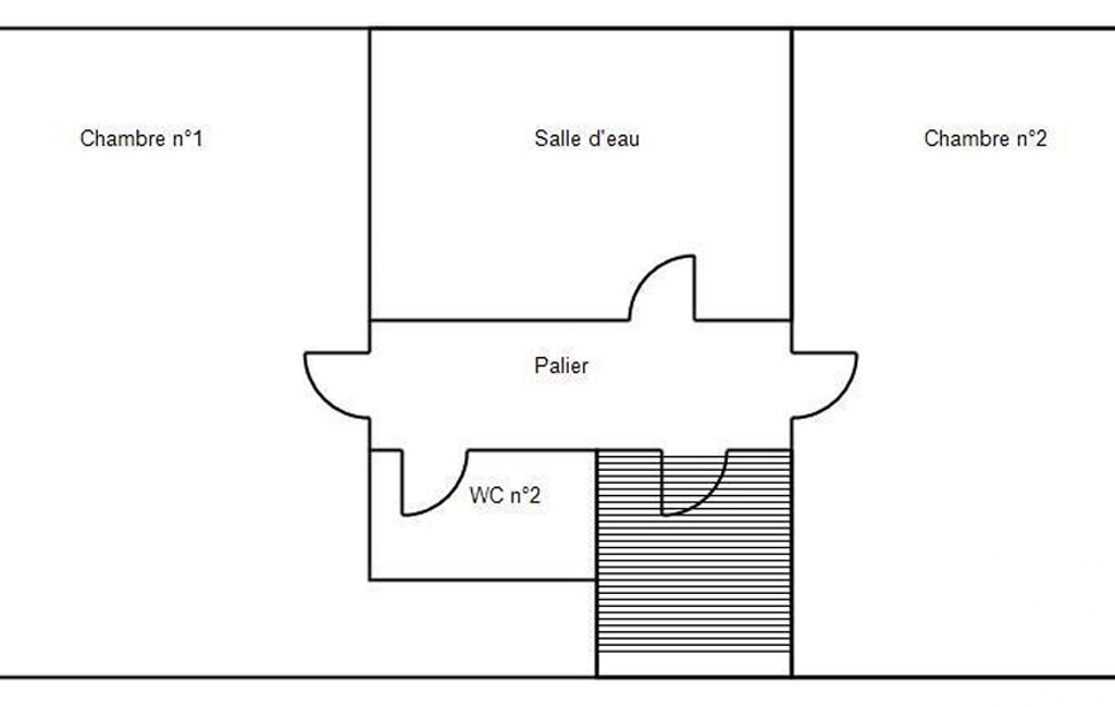 À l'étage : 2 chambres de plus de 13m² chacune, 1 salle de bain, et un WC