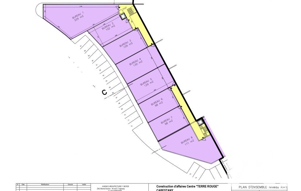 Situés sur un emplacement visible, 8 bureaux de 98m² / 98m² / 102m² / 109m² / 129m² / 130m² / 171m² et 229m² sont à vendre. Tous sont au premier et dernier étage.