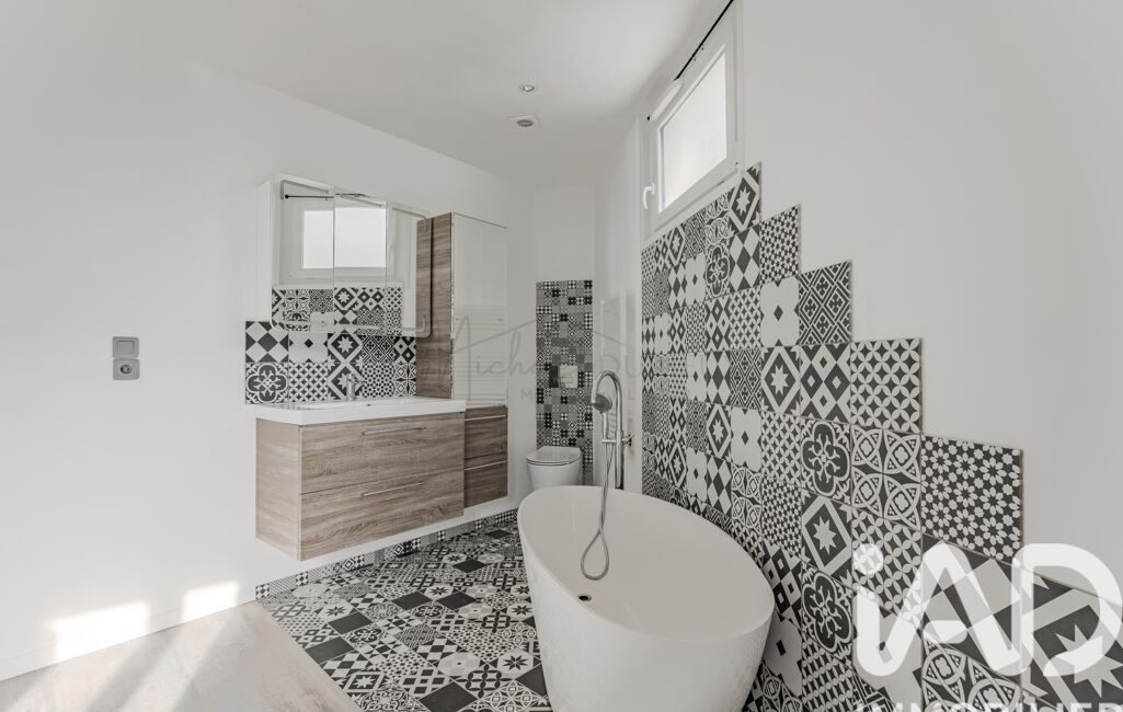 À l’étage, une chambre parentale avec baignoire, vasque et W.-C., dégagement, bureau ou chambre d’enfant.