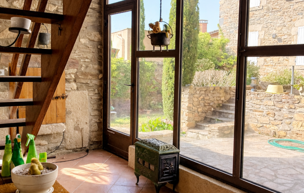 iad France - Véronique Carpin vous propose: Dans un environnement au calme absolu et préservé, en limite de zone naturelle tout en restant à proximité immédiate du village, découvrez cette belle propriété en pierre alliant cachet de l’ancien, beaux volumes et potentiel d’évolution.
