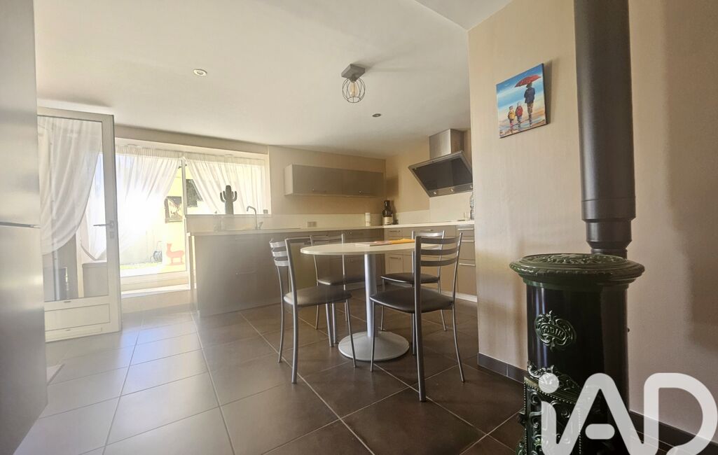 Dès l’entrée, le double séjour et la cuisine contemporaine attenante, intégralement équipée et dotée d'un poêle à bois, invitent à de beaux moments partagés.