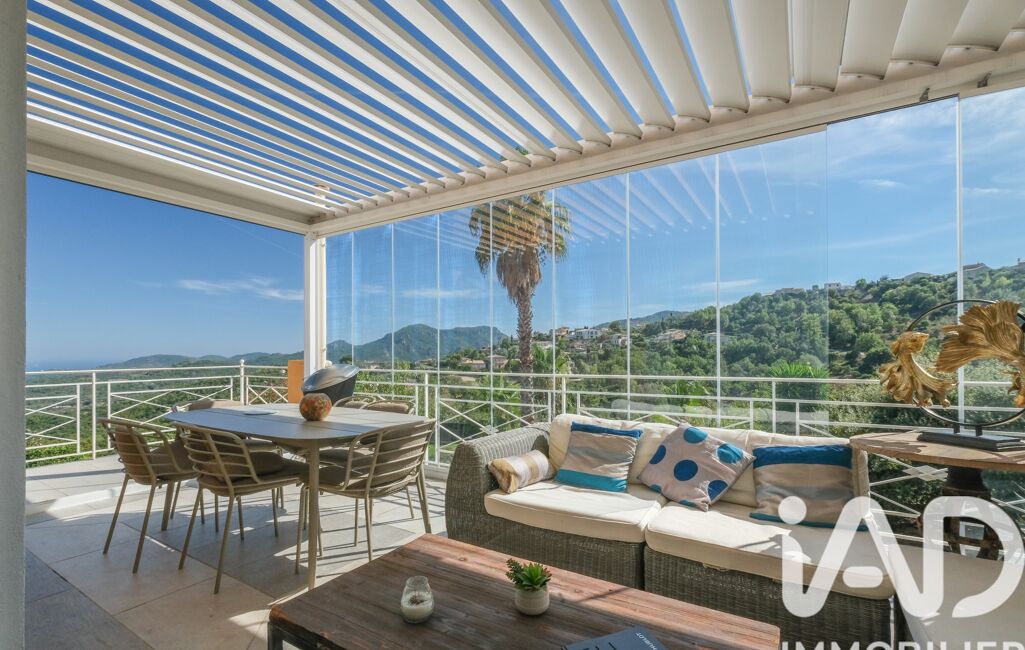 iad France - Angéla Gest vous propose: Vue Mer dans toutes les pièces ! Villa sans vis-à-vis, rénovée, climatisée, 225 m2, soit 4 chambres dont 2 suites. Piscine chauffée à débordement. Terrain paysager de 1800 m2, dans un Domaine Résidentiel convoité, à 5 minutes de l'A8. L'entrée ouvre sur une pièce de vie de 47 m2 prolongée par une vaste terrasse puis la piscine vue mer, un patio bio climatique pour vos repas d'hivers face à la mer et aux fameuses roches rouges, une cuisine semi-ouverte sur salon/salle à manger, un salon cinéma, 4 chambres dont 2 suites complètes avec bain/douche/dressing, une salle d'eau, des toilettes, une buanderie/cellier, un garage/atelier. Commerces 1 km. Cannes 17 km. Aéroport Nice 35 min. Double vitrage. Climatisation réversible. Cheminée. Interphone. Alarme. Fibre. Portail motorisé.