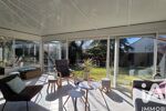 En demi-niveau, vous découvrirez un salon avec cheminée, ouvert sur une véranda chauffée, créant un espace de vie chaleureux et baigné de lumière, idéal en toute saison. Quelques marches plus bas, une quatrième chambre avec sa salle d’eau et ses WC permet d’envisager un espace indépendant, parfait pour recevoir ou pour un usage personnel.