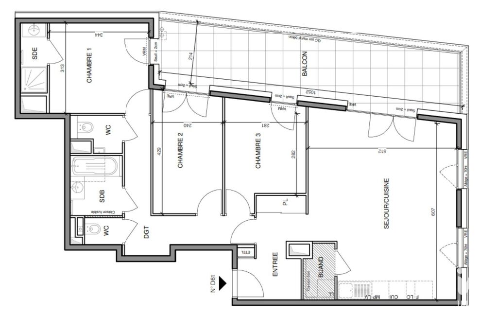 - Nbre. de chambres : 3