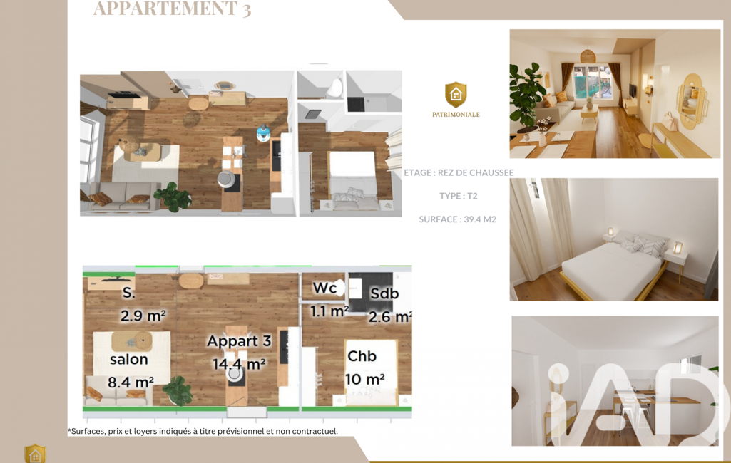 Appartement 3 : T2 - 39,40 m² - 93 905 €