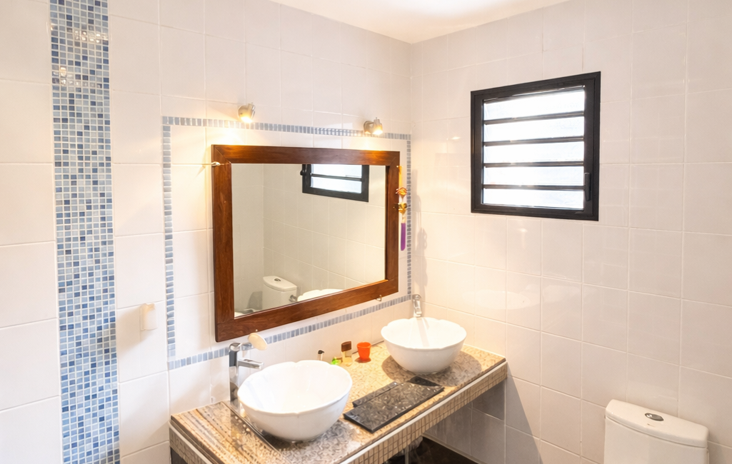 La maison principale, d'environ 116m², se compose d'une entrée, de 3 chambres climatisées, d'un spacieux séjour
